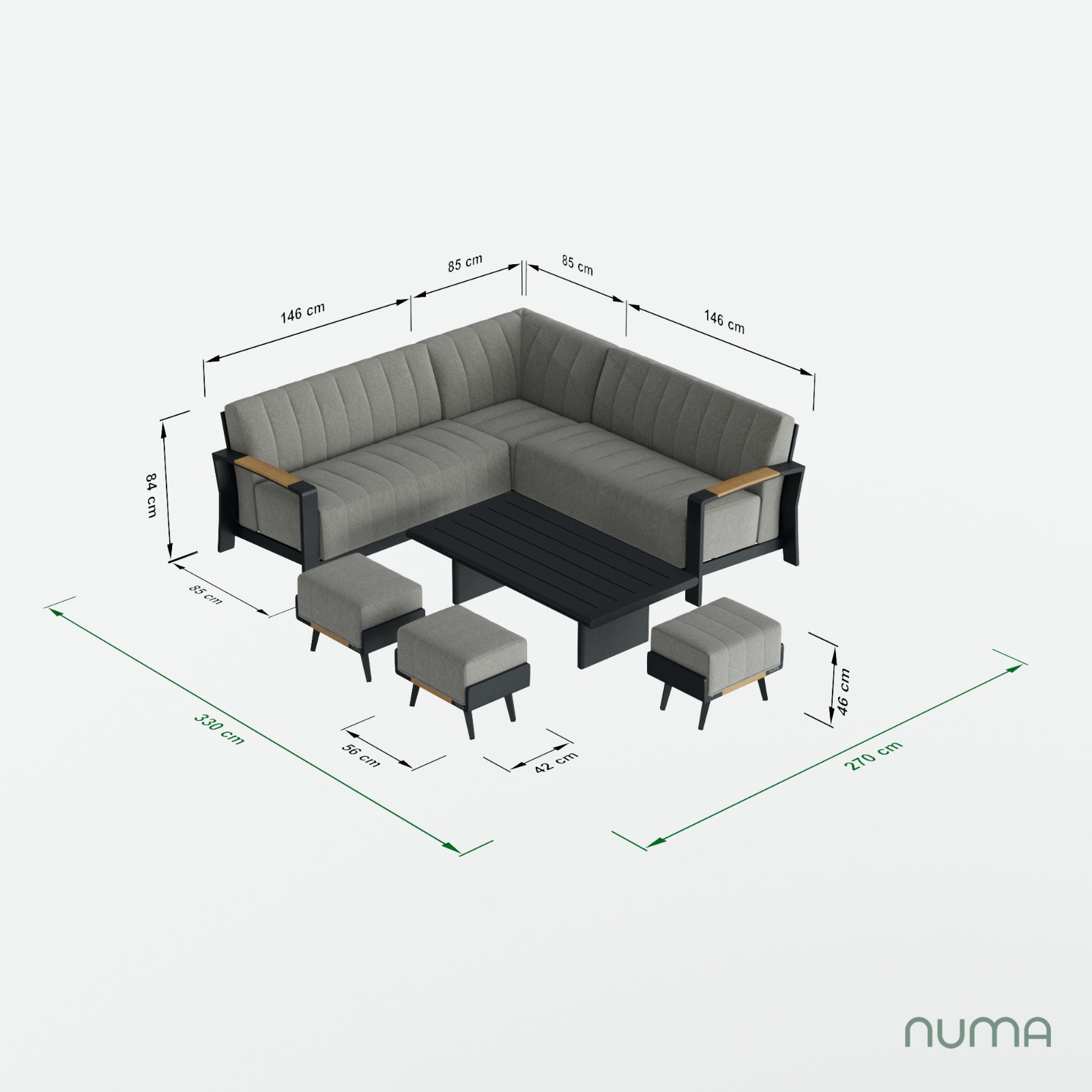 A Cohesive Philosophy The Lunar Corner Set with Belgravia table is designed to be a unified outdoor vision. Its signature Anthracite Grey finish and Real Teak accents ensure it pairs seamlessly with our wider collection of side tables and seating. By maintaining a shared design DNA across all NUMA pieces, you can expand your layout while keeping a perfectly balanced, high-end aesthetic.