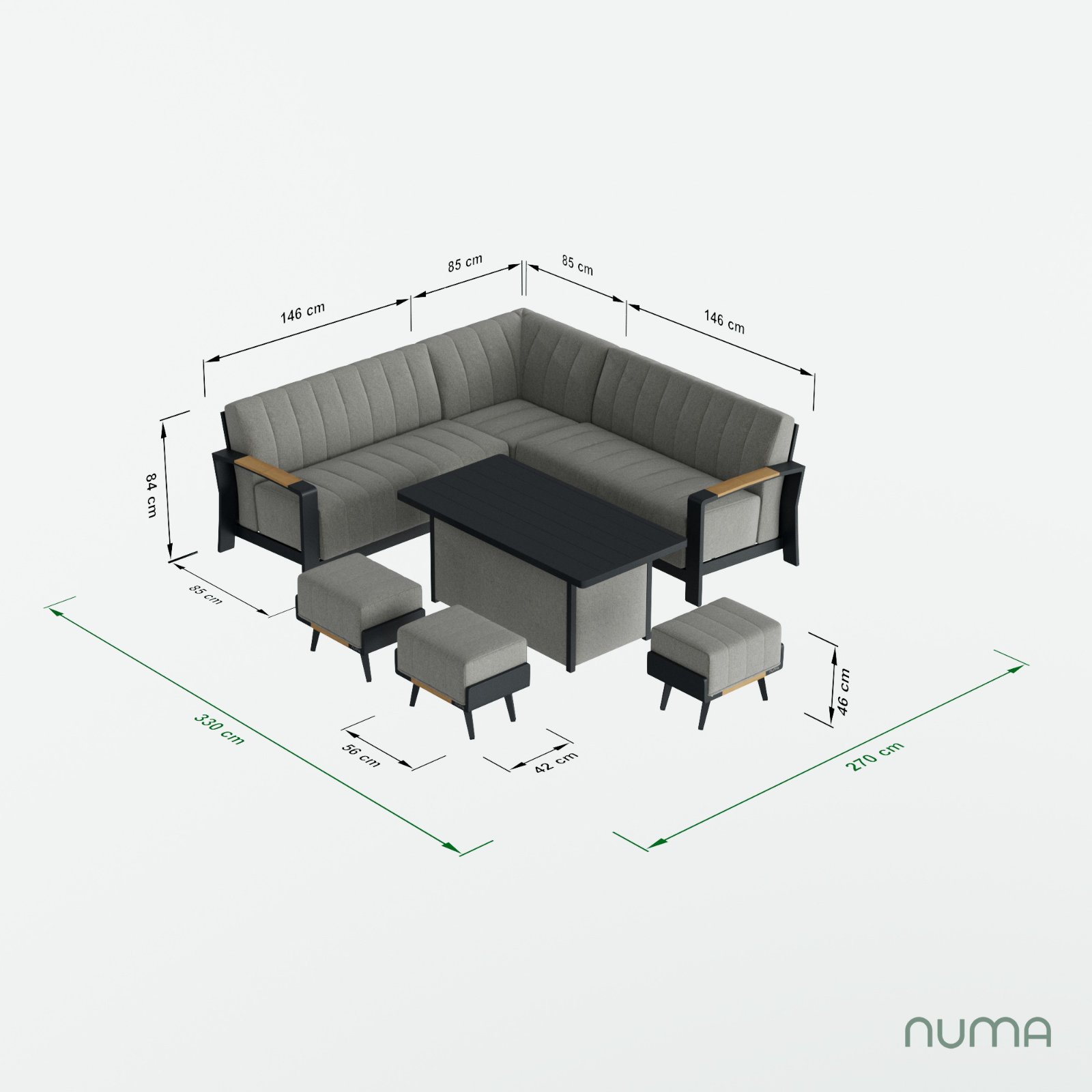 A Cohesive Philosophy The Lunar Corner Set with matching Lunar table is the ultimate expression of our unified design vision. Its signature Anthracite Grey finish and Real Teak accents ensure it pairs seamlessly with our wider collection of seating and accessories. By maintaining a shared design DNA across all NUMA pieces, you can expand your layout while keeping a perfectly balanced aesthetic.
