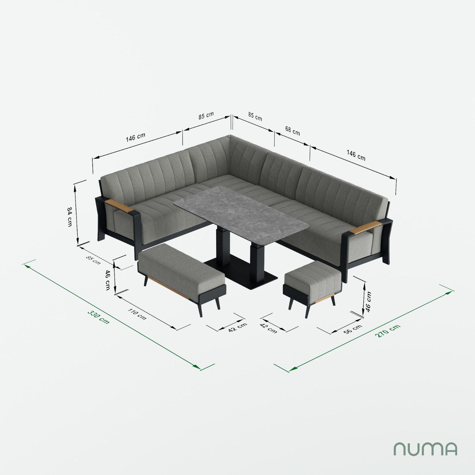 A Cohesive Philosophy The Lunar Extended Corner Set is designed to be the centerpiece of a unified outdoor vision. Its signature Anthracite Grey finish and Real Teak accents ensure it pairs seamlessly with our wider collection of side tables and seating. By maintaining a shared design DNA across all NUMA pieces, you can expand your layout while keeping a perfectly balanced, high-end aesthetic.