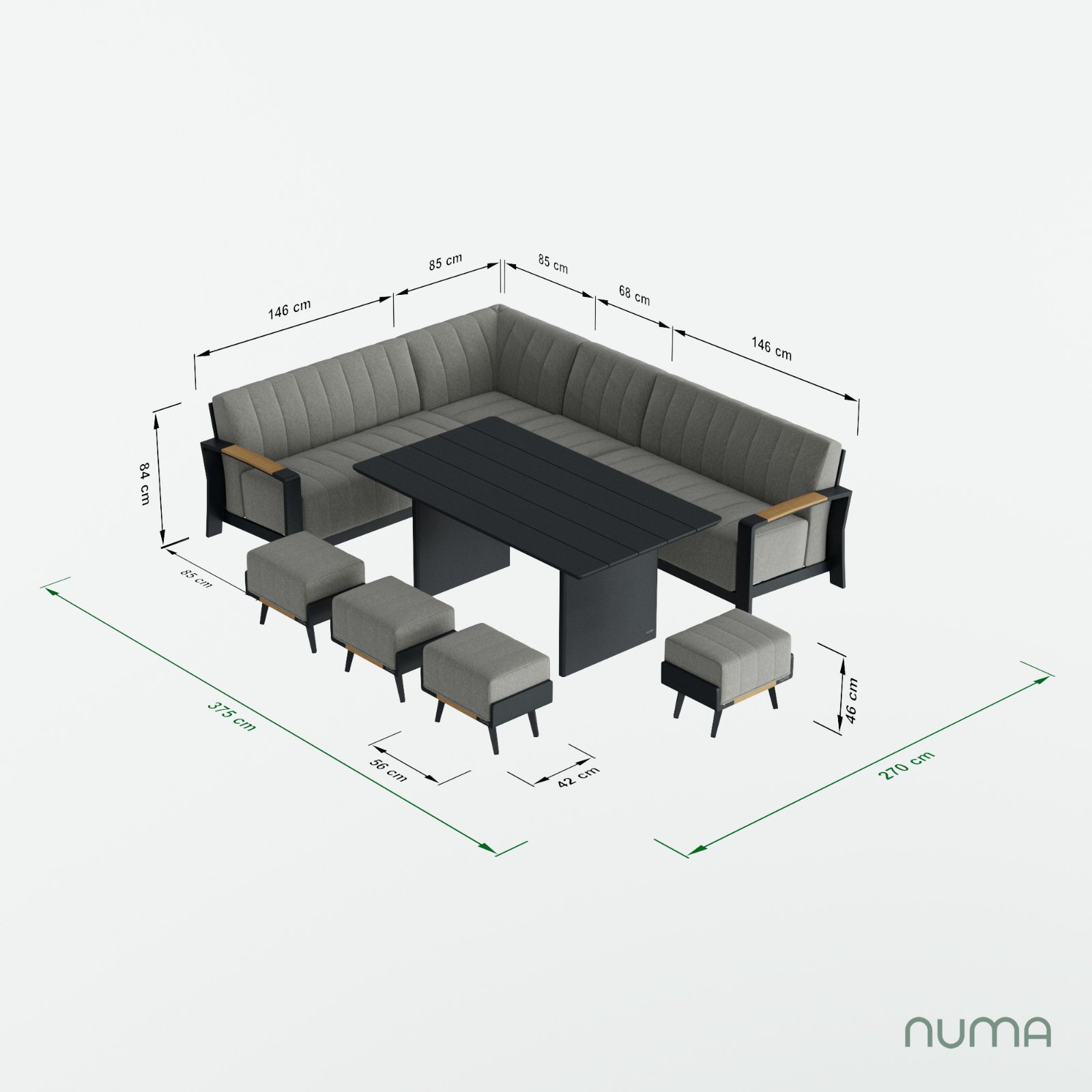 A Cohesive Philosophy The Lunar Corner Set with the Belgravia Dining Table is the ultimate expression of our unified design vision. Its signature Anthracite Grey finish and Real Teak accents ensure it pairs seamlessly with our wider collection of seating and accessories. By maintaining a shared design DNA across all NUMA pieces, you can expand your layout while keeping a perfectly balanced, high-end aesthetic.