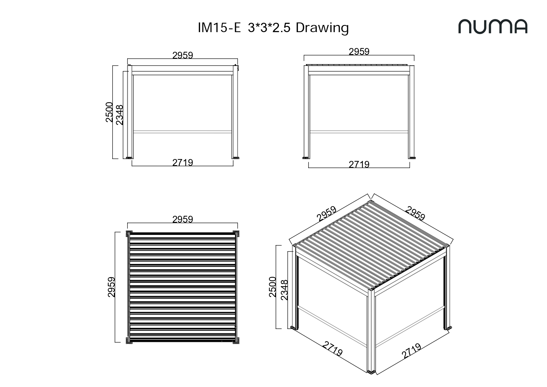 The NUMA 3x3m Electric Louvered Pergola: Architectural Precision & Effortless Control Transform your patio into a year-round, high-performance outdoor room. The 3x3m Electric model is the pinnacle of the NUMA range, combining industrial-grade strength with the luxury of smart automation. Whether you are hosting a summer lunch or an evening dinner, this pergola adapts to your needs instantly.