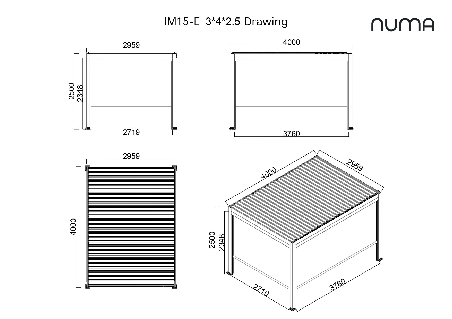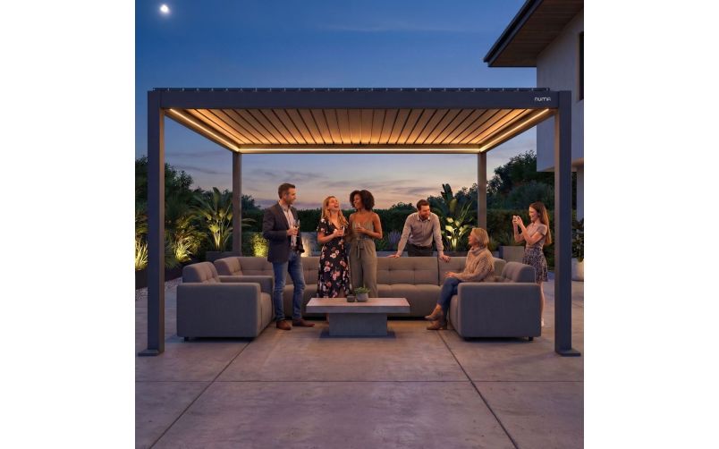 The NUMA 3x4m Electric Louvered Pergola: Expansive Design, Effortless Control Redefine the boundaries of your home with our most expansive electric model. The 3x4m Electric Pergola is engineered for those who require a larger footprint for entertaining without compromising on sleek, modern aesthetics. From sun-drenched afternoons to sophisticated evening gatherings, this structure provides the ultimate high-tech backdrop for outdoor living.