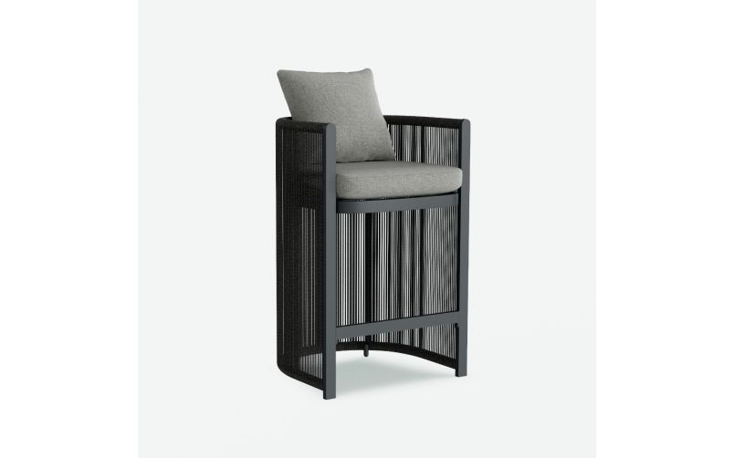 Industrial Lines & Textural Detail The Soho Bar Stool is designed for those who want their outdoor social space to make a statement. Defined by its crisp, linear aluminum frame, the standout feature of the Soho is the intricate rope design woven across the backrest. This tactile element provides a soft, handcrafted contrast to the industrial aesthetic, ensuring the stool looks as architectural as it feels comfortable. Its modern silhouette and signature RAL 7016 Anthracite finish make it a striking addition to metropolitan balconies, poolside bars, or contemporary outdoor kitchen islands.
